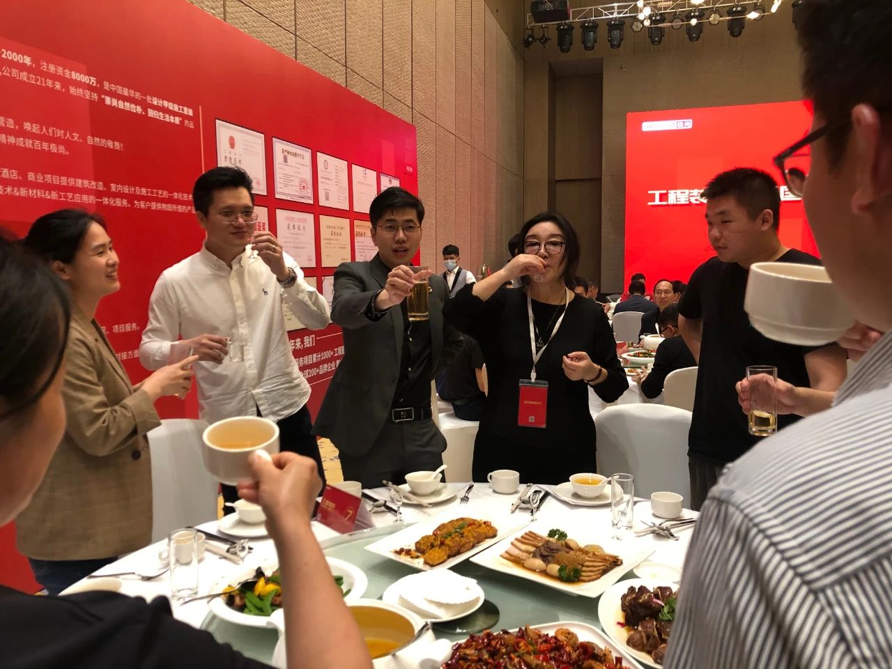 以創(chuàng)富聯(lián)盈交流的晚宴環(huán)節(jié),作為本次活動(dòng)主講人的袁岳陽(yáng)先生與創(chuàng)始人兼總經(jīng)理王筱慧女士帶領(lǐng)極尚的工作團(tuán)隊(duì)與參加創(chuàng)富交流活動(dòng)的伙伴表示極尚此次助力工程合作聯(lián)盈的決心!